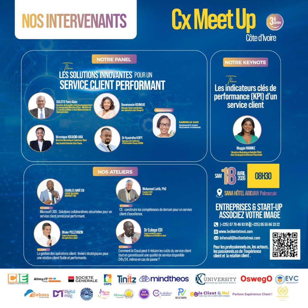 Restons connectés pour découvrir nos intervenants d’exception au CX Meet Up Côte d’Ivoire, édition 3 pour une vision 360° !
